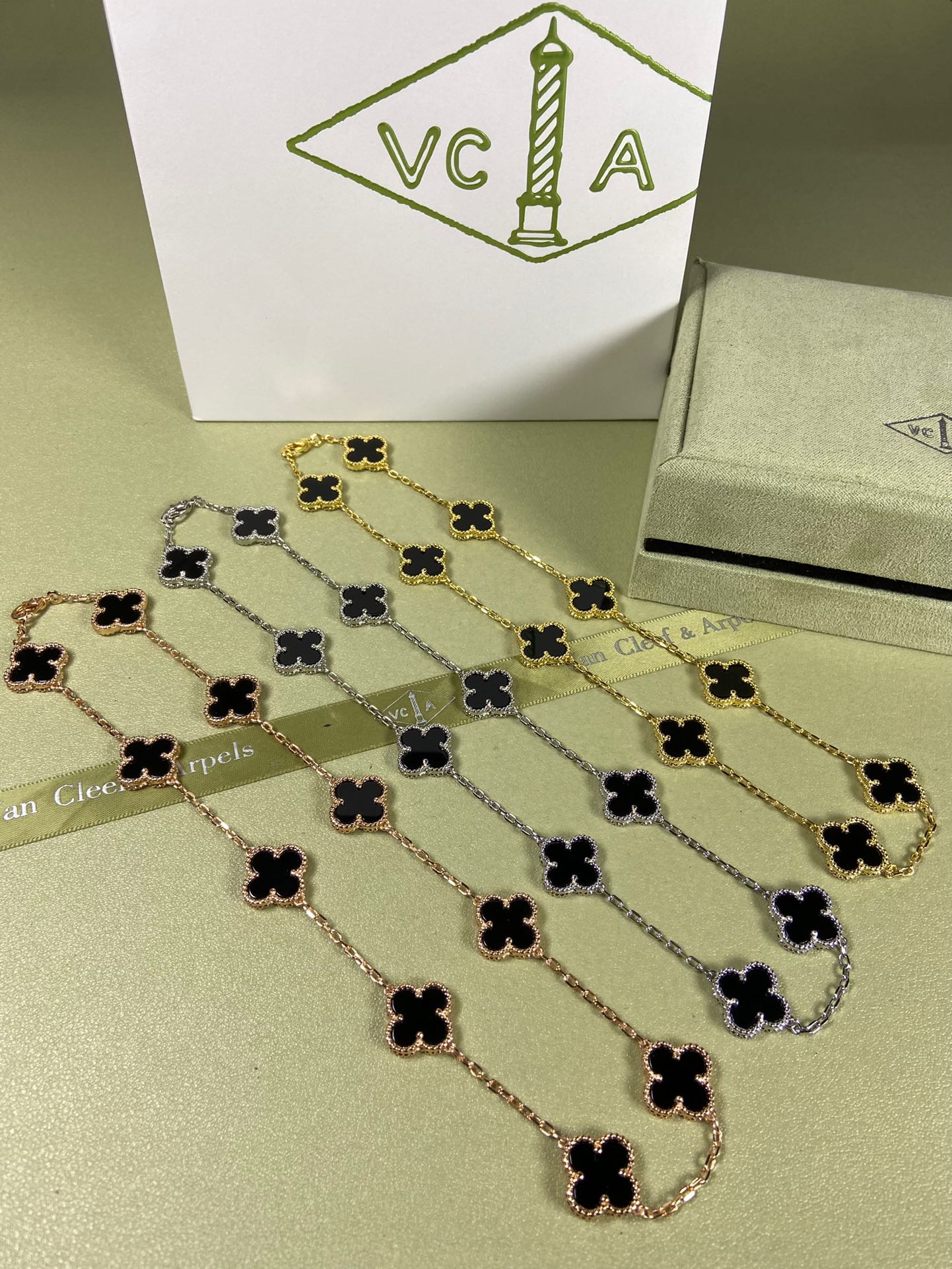 10 motifs necklace, black agate, gold, rose gold, silver