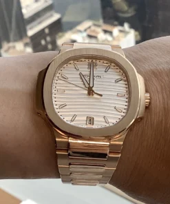 The Nautilus Ladies Self-Winding Rose Gold Watch reinterprets sporty chic with two new versions with a diamond-free bezel and two gorgeous dials: Brilliant White and Honey Gold Brilliant.
