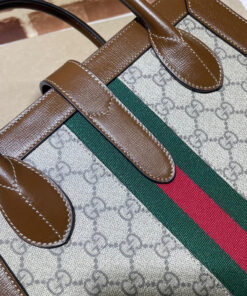 Beige and ebony GG Supreme canvas, a material with low environmental impact, with brown leather trim