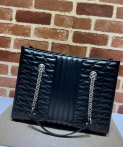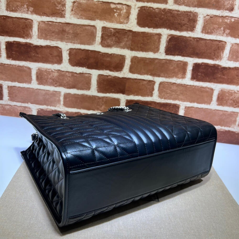 Black matelassé leather