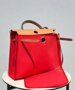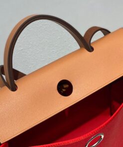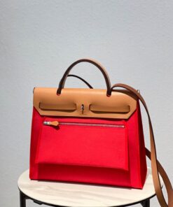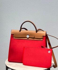 Brown leather with red H Berline canvas