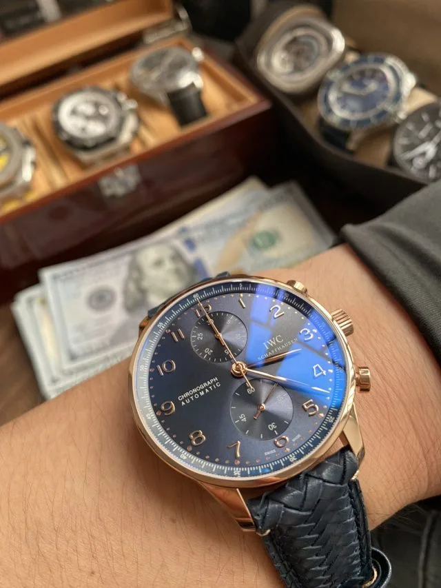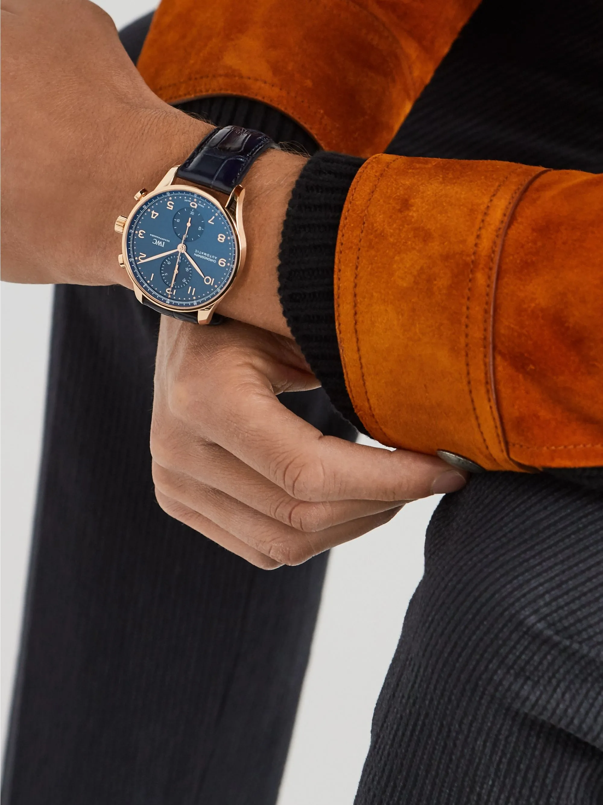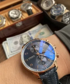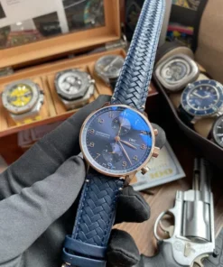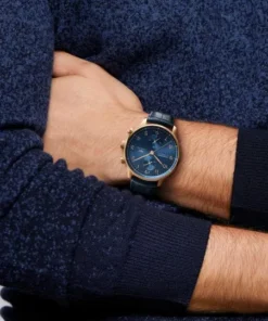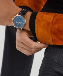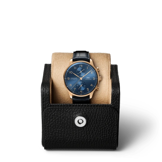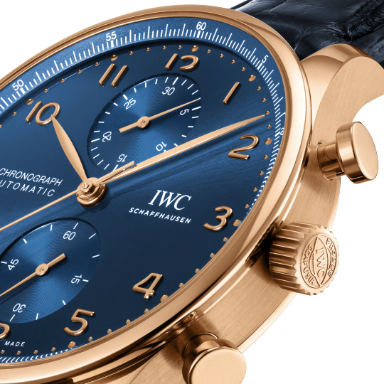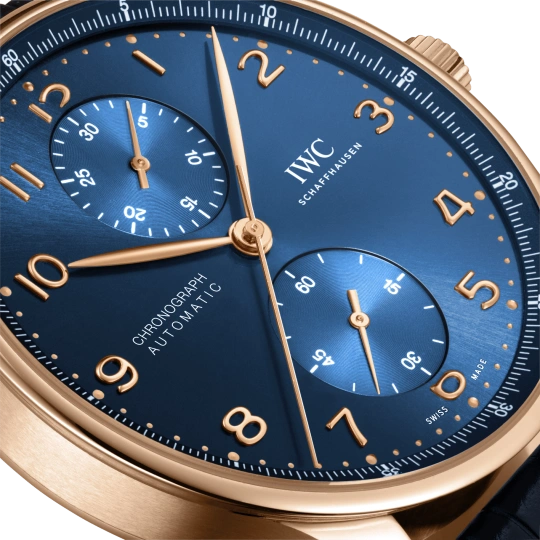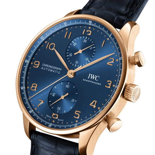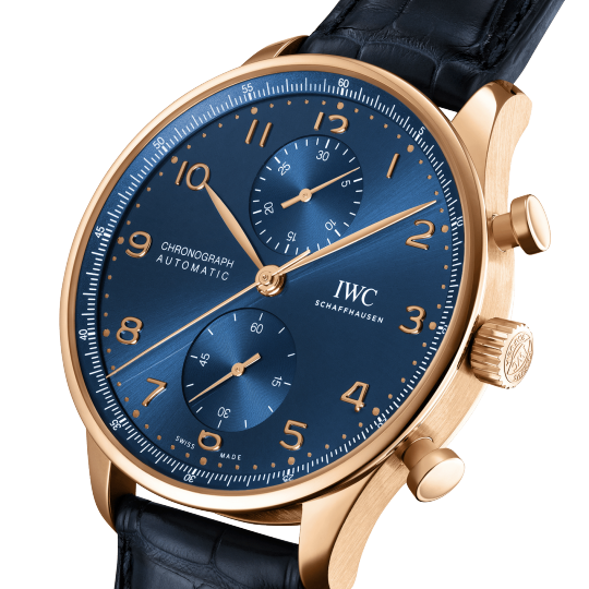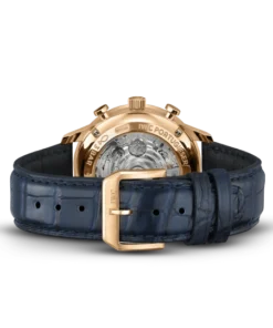18 ct 5N gold case, Automatic, self-winding, Diameter 41.0 mm, Blue alligator leather strap, Strap width 20.0 mm.