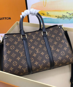 Monogram coated canvas with grained cowhide-leather gussets