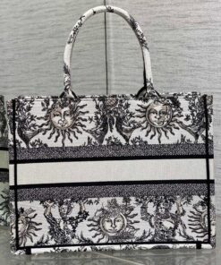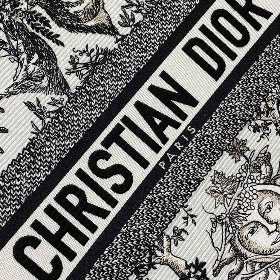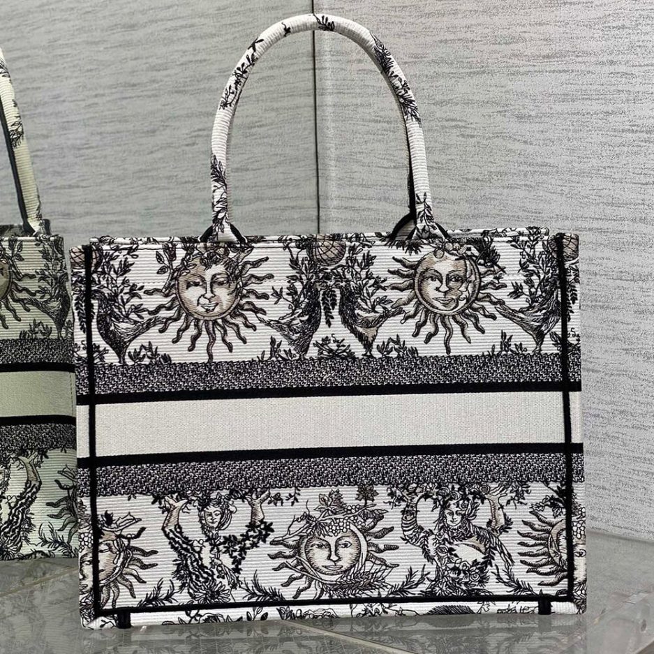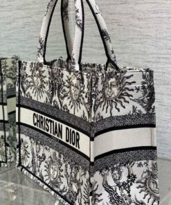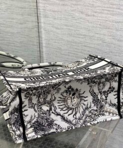 White and Black Toile de Jouy Soleil Embroidery (36 x 27.5 x 16.5 cm)