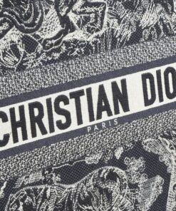 Blue and Ecru Toile de Jouy Reverse Embroidery and Blue Calfskin