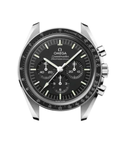 Presented on a polished-brushed five-arched-links-per-row bracelet, this 42 mm Moonwatch in stainless steel features sapphire crystal glass on the front as well as on the caseback. Inspired by the 4th generation Speedmaster style worn on the moon, it also includes an asymmetrical case, black step dial with applied OMEGA logo and the famous dot over 90 on the anodised aluminium bezel ring.