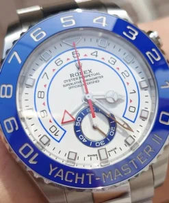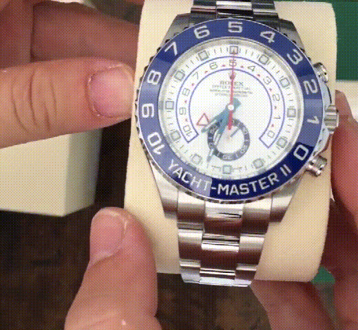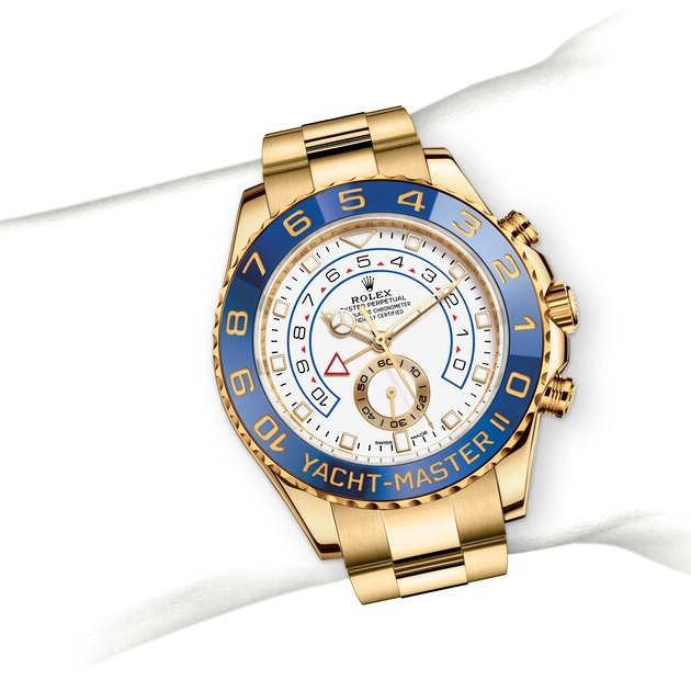 The Yacht-Master II is equipped with a new dial, and new hands that are characteristic of Rolex Professional models, enhancing legibility and sharpening its aesthetic appeal. The dial now features a triangular hour marker at 12 o’clock and a rectangular hour marker at 6 o’clock for more intuitive reading of the watch.