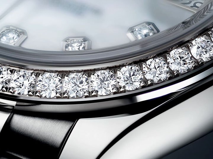 Non scratch real Sapphire crystal is use on all our Swiss Replica watches. Been one of the hardest substances on earth it’s virtually impossible to scratch unlike mineral glass found other replicas. Real Moissanite diamond gem is hand-faceted by our gem cutters to offer the same brilliance and spark found on the genuine watches. We guarantee that your Swiss replica watch diamonds brilliance will last forever.
