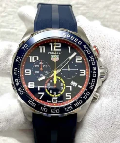 Fitted with a textured blue rubber strap, with TAG Heuer engraved pin buckle, this energetic challenger looks the part.